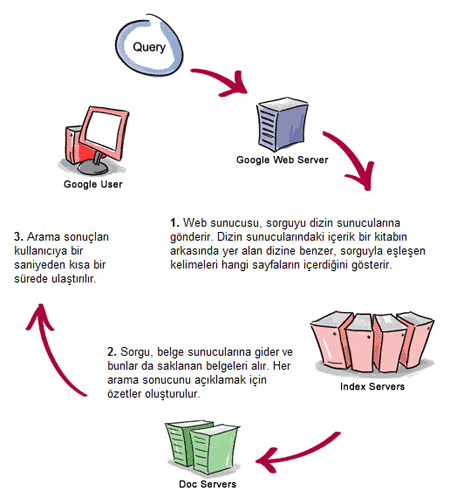 Yarım saniyeden az süren bir Google sorgusunda aşağıdaki süreçler gerçekleşmektedir.